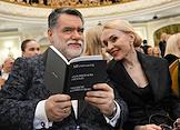 Премьера симфонии Nicole в исполнении оркестра musicAeterna под руководством дирижера Теодора Курентзиса в Московской государственной консерватории имени П.И. Чайковского. Актриса, режиссер Надежда Михалкова (справа) и актер Андрей Баков (слева) перед началом концерта.
