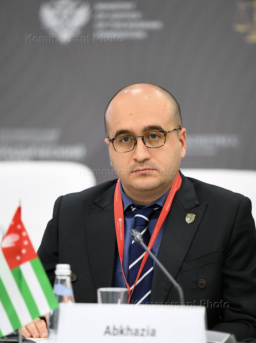 XIII Петербургский международный юридический форум (ПМЮФ) в конгрессно-выставочном центре "Экспофорум". Совещание министров юстиций. Министр юстиции Республики Абхазия Анри Барциц во время совещания.