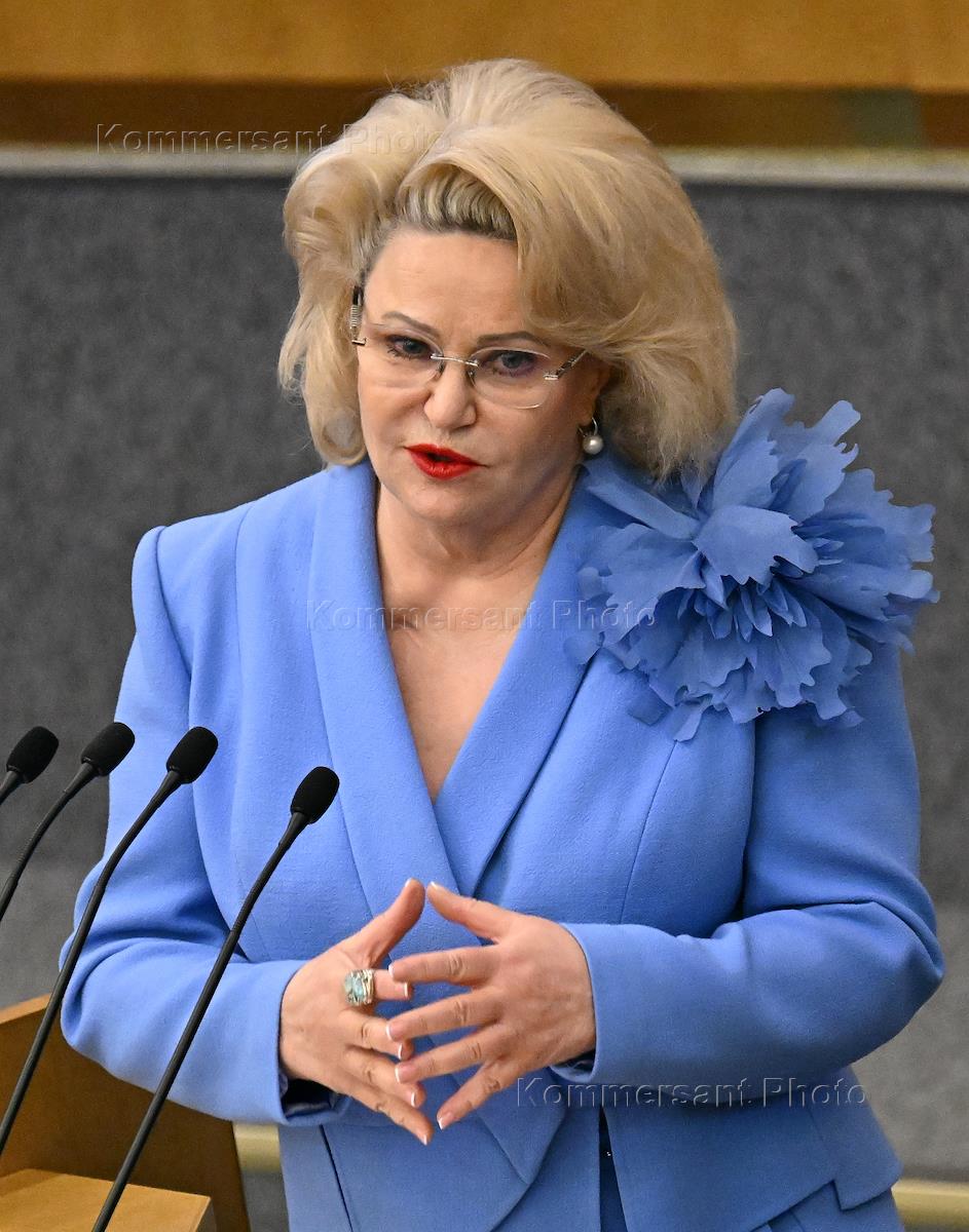 Пленарное заседание Государственной думы (ГД) России. Председатель комитета ГД России по просвещению Ирина Белых во время заседания.