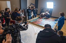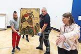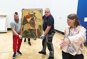 Подготовка к открытию выставки "Пять веков русского искусства" в филиале Третьяковской галереи в Калининграде.