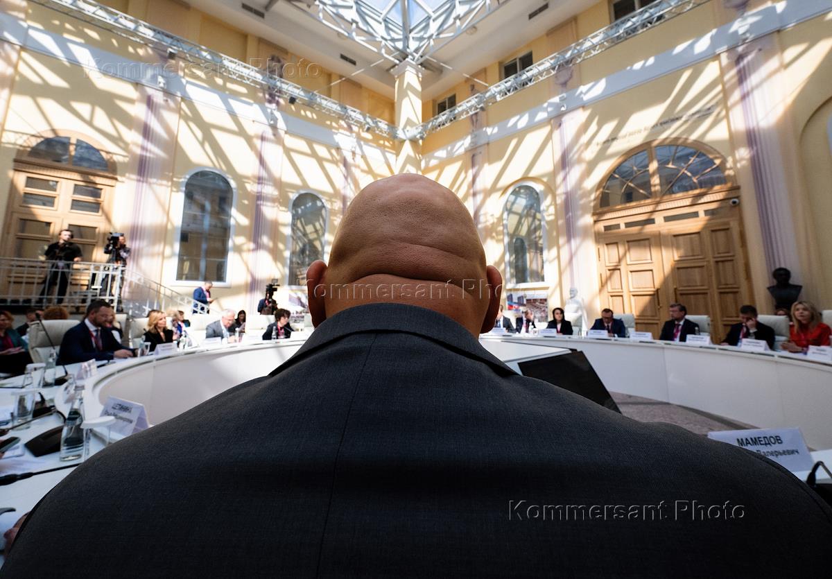 XI Невский международный экологический конгресс в Таврическом дворце. Первый заместитель председателя комитета Государственной думы (ГД) России по туризму и развитию туристической инфраструктуры Николай Валуев (в центре) во время конгресса.