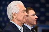 Подведение итогов предварительного голосования по кандидатурам для последующего выдвижения от партии "Единая Россия" кандидатами на выборах в органы государственной власти и органы местного самоуправления. Церемония соединения ключей шифрования в Центральном исполкоме партии "Единая Россия". Руководитель фракции партии "Единая Россия" в Государственной думе России Владимир Васильев (слева) и первый заместитель председателя Совета Федерации России Владимир Якушев (справа) на церемонии.