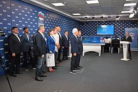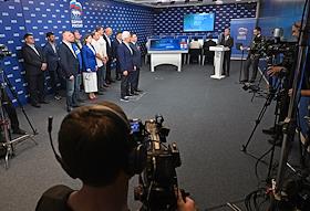 Подведение итогов предварительного голосования по кандидатурам для последующего выдвижения от партии "Единая Россия" кандидатами на выборах в органы государственной власти и органы местного самоуправления. Церемония соединения ключей шифрования в Центральном исполкоме партии "Единая Россия".