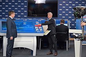 Подведение итогов предварительного голосования по кандидатурам для последующего выдвижения от партии "Единая Россия" кандидатами на выборах в органы государственной власти и органы местного самоуправления. Церемония соединения ключей шифрования в Центральном исполкоме партии "Единая Россия". Президент ПАО "Ростелеком" Михаил Осеевский на церемонии.
