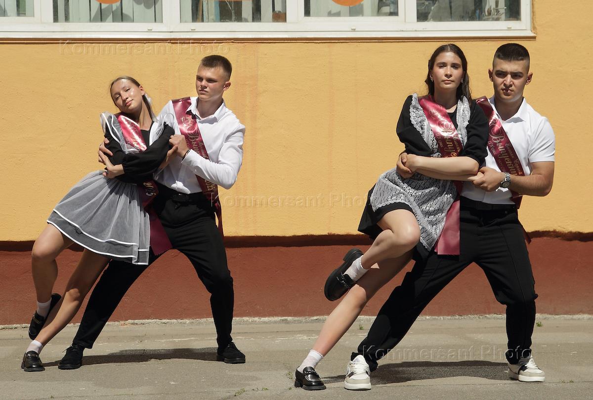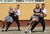 Праздник "Последний звонок" МОУ "Средняя школа с углубленным изучением отдельных предметов № 12". Жанровая фотография. Выступление выпускников на празднике.