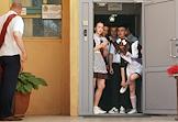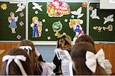 Праздник "Последний звонок" МОУ "Средняя школа с углубленным изучением отдельных предметов № 12". Жанровая фотография. Выпускники в классе.