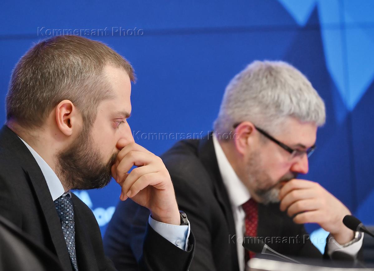 Пресс-конференция на тему "Общественная палата РФ: старт очередного этапа ротации составов общественных наблюдательных комиссий" в МИА "Россия сегодня". Заместитель министра юстиции России Вадим Баланин (справа) и ответственный секретарь Общественной наблюдательной комиссии (ОНК) города Москвы Алексей Мельников (слева) во время пресс-конференции.