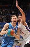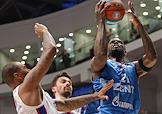 Единая лига ВТБ по баскетболу. Матч между командами "Зенит" (Санкт-Петербург) - ЦСКА (Москва) на стадионе "Арена". Игрок команды "Зенит" Окаро Уайт (слева) во время матча.
