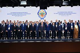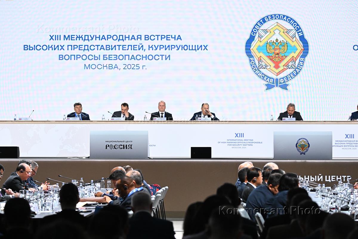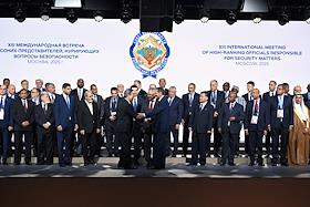 13-я международная встреча высоких представителей, курирующих вопросы безопасности, под председательством Секретаря Совета Безопасности России Сергея Шойгу. Секретарь Совета безопасности России Сергей Шойгу (в центре) и участники встречи во время церемонии совместного фотографирования.