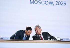 13-я международная встреча высоких представителей, курирующих вопросы безопасности, под председательством Секретаря Совета Безопасности России Сергея Шойгу. Церемония открытия. Секретарь Совета безопасности России Сергей Шойгу (справа) во время церемонии.