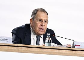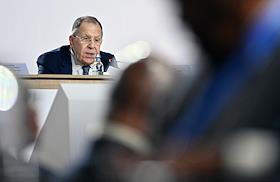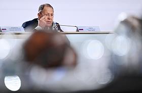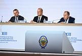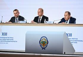 13-я международная встреча высоких представителей, курирующих вопросы безопасности, под председательством Секретаря Совета Безопасности России Сергея Шойгу. Церемония открытия. Министр иностранных дел России Сергей Лавров во время церемонии.