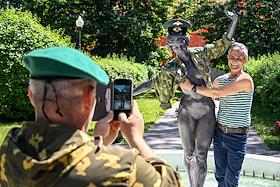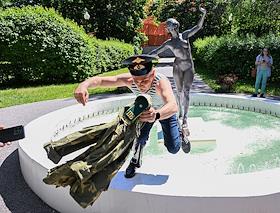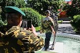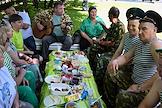 Празднование Дня пограничника. Жанровая фотография. Воины-пограничники во время гуляний в парке имени Горького.