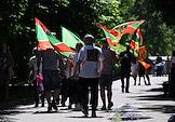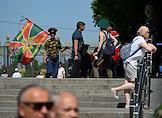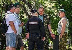 Празднование Дня пограничника. Жанровая фотография. Воины-пограничники и сотрудники полиции во время гуляний в парке имени Горького.