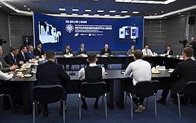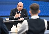 25-я международная специализированная выставка "Металлообработка- 2025" в ЦВК "Экспоцентр". Председатель правительства России Михаил Мишустин во время встречи со студентами высших технических учебных заведений на полях выставки.