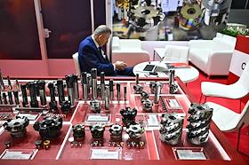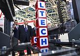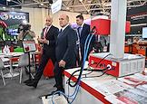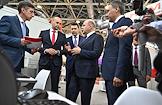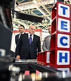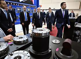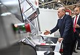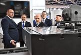 25-я международная специализированная выставка "Металлообработка- 2025" в ЦВК "Экспоцентр". Председатель правительства России Михаил Мишустин (в центре) во время осмотра выставки.