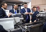 25-я международная специализированная выставка "Металлообработка- 2025" в ЦВК "Экспоцентр". Председатель правительства России Михаил Мишустин (второй справа) и министр промышленности и торговли России Антон Алиханов (справа) во время осмотра выставки.