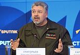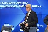 Пресс-конференция на тему "Пытки российских военнослужащих: свидетельства освобожденных из украинского плена" в МИА "Россия сегодня". Председатель Международного общественного трибунала по преступлениям украинских неонацистов, член Общественной палаты России Максим Григорьев во время пресс-конференции.