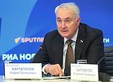 Пресс-конференция на тему "Пытки российских военнослужащих: свидетельства освобожденных из украинского плена" в МИА "Россия сегодня". Председатель комитета Государственной думы России по обороне Андрей Картаполов во время пресс-конференции.
