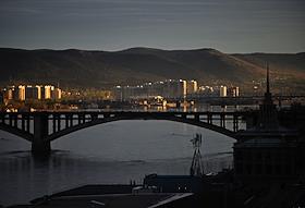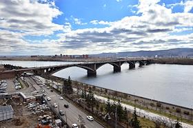 Виды Красноярска. Жанровая фотография. Коммунальный мост через реку Енисей.
