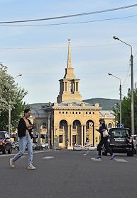 Виды Красноярска. Жанровая фотография. Здание Речного вокзала на набережной реки Енисей.