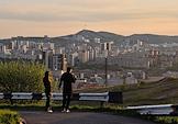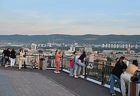 Виды Красноярска. Отдыхающие на Караульной горе.