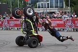 День Московского спорта в олимпийском комплексе "Лужники". Жанровая фотография. Участники во время показательных выступлений по фристайлу на багги.