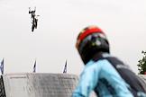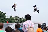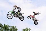 День Московского спорта в олимпийском комплексе "Лужники". Жанровая фотография. Участники во время показательных выступлений по мотофристайлу.