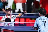 День Московского спорта в олимпийском комплексе "Лужники". Жанровая фотография. Дети во время игры в настольный теннис.