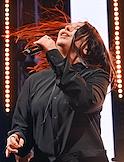 "Это лето фестиваль 2025" в саду "Эрмитаж". Певица Afelia (Алиса Стяжкова) во время выступления.