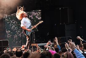 "Это лето фестиваль 2025" в саду "Эрмитаж". Солист группы "Комната культуры" Женя Трофимов (слева) во время выступления.