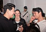 Это лето фестиваль 2025" в саду "Эрмитаж". Слева направо: режиссеры Евгений Сангаджиев, Ксения Андрианова и актер Роман Васильев на фестивале.