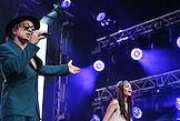 "Это лето фестиваль 2025" в саду "Эрмитаж". Участники электро-поп-дуэта Nemiga Влад Соболев (слева) и Karina Pill во время выступления.
