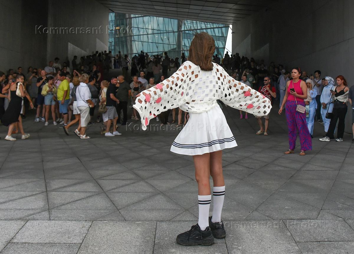Виды Санкт-Петербурга. Жанровая фотография. Горожане прячутся от дождя и ветра в переходе бизнес-центра "Лахта-центр".