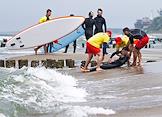 Виды пляжей Калининградской области перед началом купального (туристического) сезона. Жанровая фотография. Сотрудники спасательной службы пляжа во время тренировки.