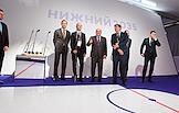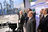 Рабочая поездка председателя правительства России Михаила Мишустина в Нижний Новгород. Выставка "Цифровая индустрия промышленной России" (ЦИПР) в рамках X конференции цифровых технологий "ЦИПР-2025" в выставочном центре "Нижегородская ярмарка". Слева направо: министр промышленности и торговли России Антон Алиханов, первый заместитель председателя правительства России Денис Мантуров, председатель правления, генеральный директор ПАО "Газпром нефть" Александр Дюков, заместитель председателя правительства России - глава аппарата правительства России Дмитрий Григоренко и председатель правительства России Михаил Мишустин во время посещения выставки.
