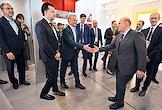 Рабочая поездка председателя правительства России Михаила Мишустина в Нижний Новгород. Выставка "Цифровая индустрия промышленной России" (ЦИПР) в рамках X конференции цифровых технологий "ЦИПР-2025" в выставочном центре "Нижегородская ярмарка". Заместитель председателя правительства России - глава аппарата правительства России Дмитрий Григоренко (справа), председатель правительства России Михаил Мишустин (третий справа) и президент, председатель правления Сбербанка России Герман Греф (четвертый слева) во время посещения выставки.
