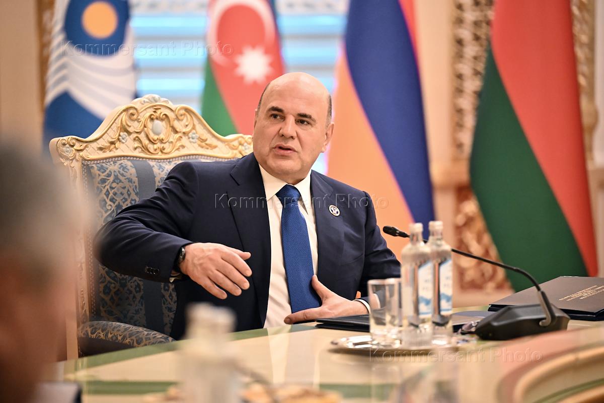 Рабочая поездка председателя правительства России Михаила Мишустина в Душанбе. Заседание Совета глав правительств Содружества Независимых Государств (СНГ). Председатель правительства России Михаил Мишустин во время заседания.