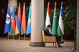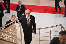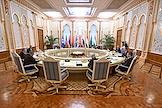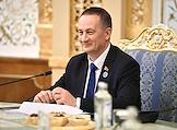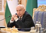 Рабочая поездка председателя правительства России Михаила Мишустина в Душанбе. Заседание Совета глав правительств Содружества Независимых Государств (СНГ). Генеральный секретарь СНГ Сергей Лебедев во время заседания.