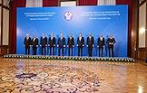 Рабочая поездка председателя правительства России Михаила Мишустина в Душанбе. Заседание Совета глав правительств Содружества Независимых Государств (СНГ). Церемония совместного фотографирования участников заседания.