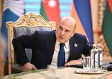 Рабочая поездка председателя правительства России Михаила Мишустина в Душанбе. Заседание Совета глав правительств Содружества Независимых Государств (СНГ). Слева направо: председатель Кабинета министров Киргизии – руководитель Администрации Президента Киргизии Адылбек Касымалиев, председатель правительства России Михаил Мишустин, премьер-министр Казахстана Олжас Бектенов и премьер-министр Таджикистана Кохир Расулзода после окончания церемонии совместного фотографирования участников заседания.