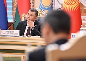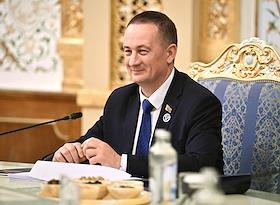 Рабочая поездка председателя правительства России Михаила Мишустина в Душанбе. Заседание Совета глав правительств Содружества Независимых Государств (СНГ). Премьер-министр Республики Беларусь Александр Турчин во время заседания.