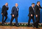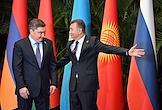 Рабочая поездка председателя правительства России Михаила Мишустина в Душанбе. Заседание Совета глав правительств Содружества Независимых Государств (СНГ). Генеральный секретарь СНГ Сергей Лебедев (в центре) перед началом церемонии совместного фотографирования участников заседания.