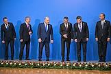 Рабочая поездка председателя правительства России Михаила Мишустина в Душанбе. Заседание Совета глав правительств Содружества Независимых Государств (СНГ). Слева направо: премьер-министр Республики Беларусь Александр Турчин, председатель Кабинета министров Киргизии – руководитель Администрации Президента Киргизии Адылбек Касымалиев, председатель правительства России Михаил Мишустин, премьер-министр Таджикистана Кохир Расулзода, премьер-министр Казахстана Олжас Бектенов и председатель правительства Узбекистана Абдулла Арипов перед началом церемонии совместного фотографирования участников заседания.