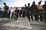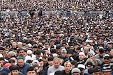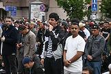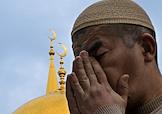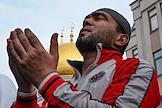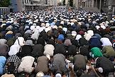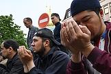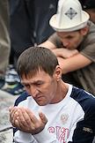 Праздник жертвоприношения Курбан-Байрам в Московской Соборной мечети. Верующие во время праздничного богослужения.