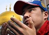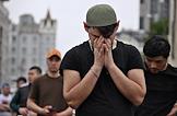 Праздник жертвоприношения Курбан-Байрам в Московской Соборной мечети. Верующие перед началом праздничного богослужения.