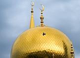 Праздник жертвоприношения Курбан-Байрам в Московской Соборной мечети. Жанровая фотография. Голубь, летящий на фоне купола мечети.