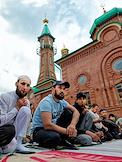 Праздник жертвоприношения Курбан-Байрам в Красной соборной мечети. Верующие перед началом праздничного богослужения.
