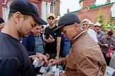Праздник жертвоприношения Курбан-Байрам в Красной соборной мечети. Жанровая фотография. Верующие пересчитывают деньги.