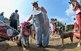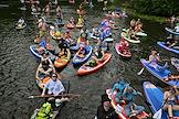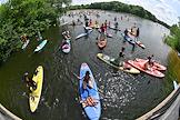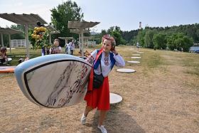 Костюмированная сап-регата в Серебряном бору. Участники перед началом регаты.