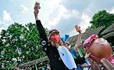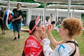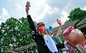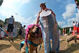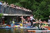 Костюмированная сап-регата в Серебряном бору. Участники и зрители во время регаты.